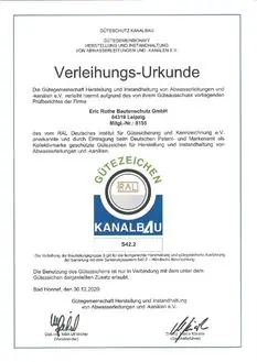 Zertifiziertes Unternehmen in Gütesicherung Kanalbau nach RAL-GZ 961